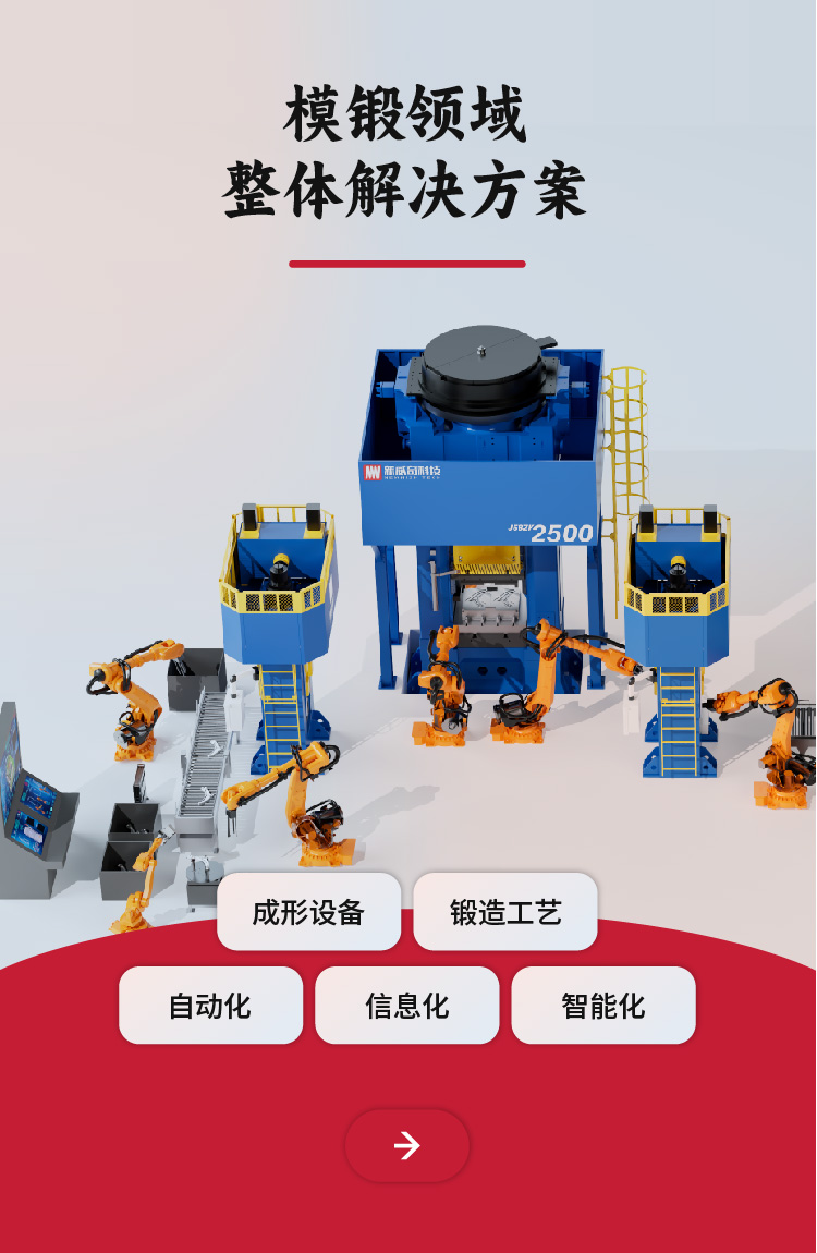 根據用戶的產品特點和生產工藝,提供專業、高質量、定制化的整體解決方案為鍛造產線賦能自動化、信息化、智能化的產品及技術
